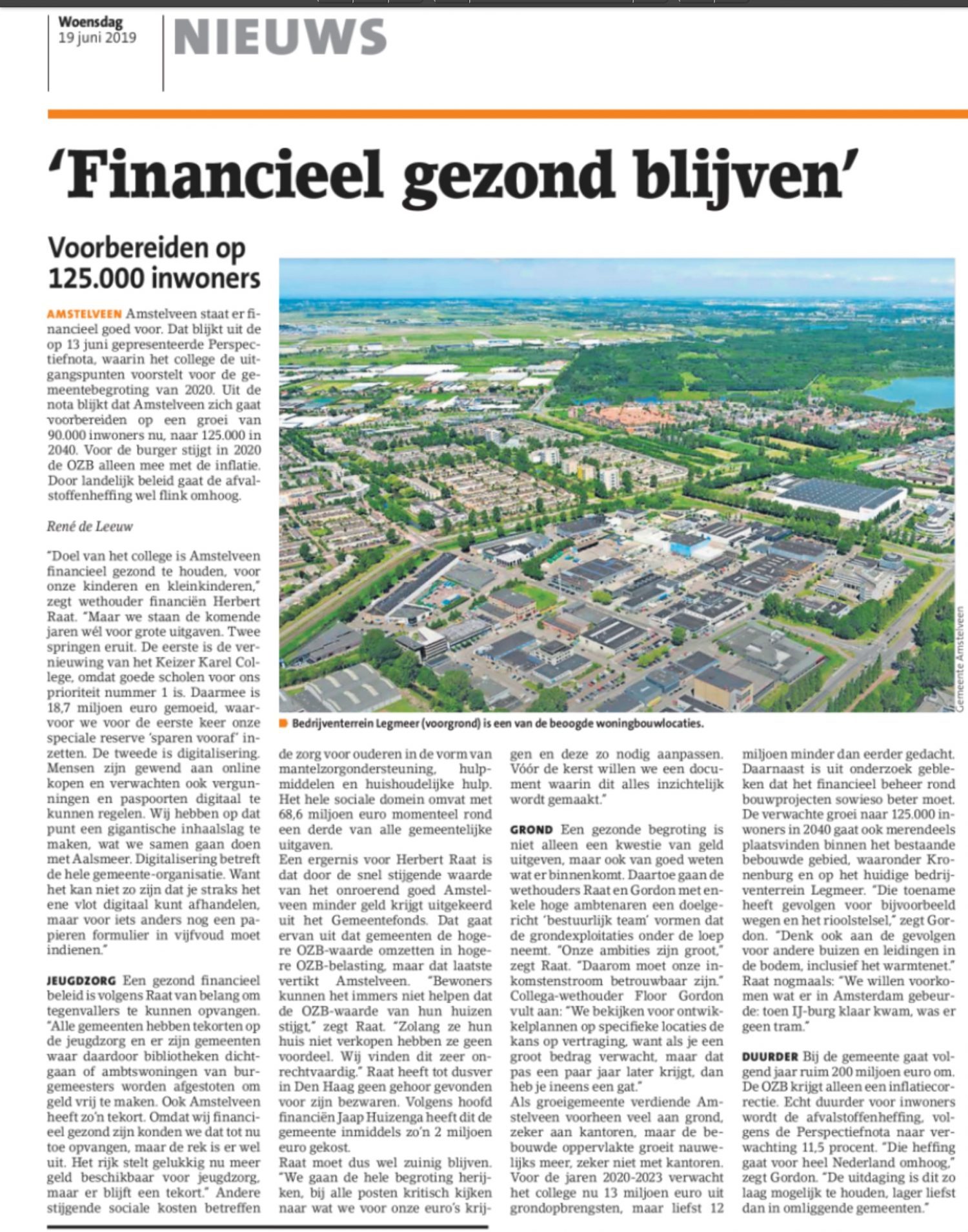 2019-19-6; Amstelveens Nieuwsblad; Herbert Raat en Floor Gordon over de grenzen aan de groei van Amstelveen en de perspectiefnota 2020 Dit delen:TweetVind-ik-leuk Aan het laden...