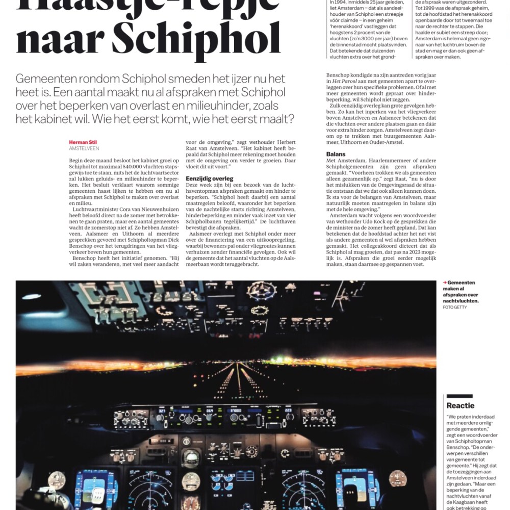 2019-26-7; Het Parool; Herbert Raat over afspraken met Schiphol voor Amstelveen. Journalist is Herman Stil Dit delen:TweetVind-ik-leuk Aan het laden...