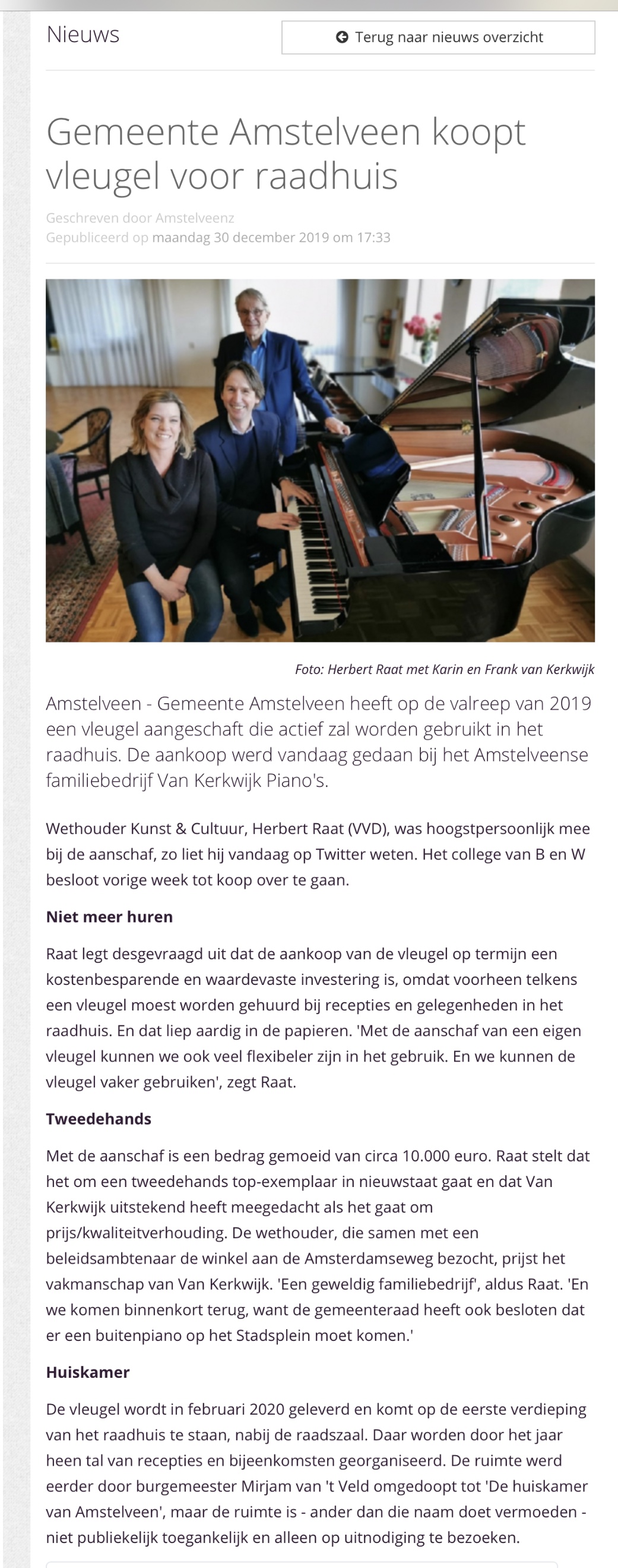 2019-30-12; AmstelveenZ; over aankoop vleugel Herbert Raat bij Van Kerkwijk Amstelveen Dit delen:TweetVind-ik-leuk Aan het laden...