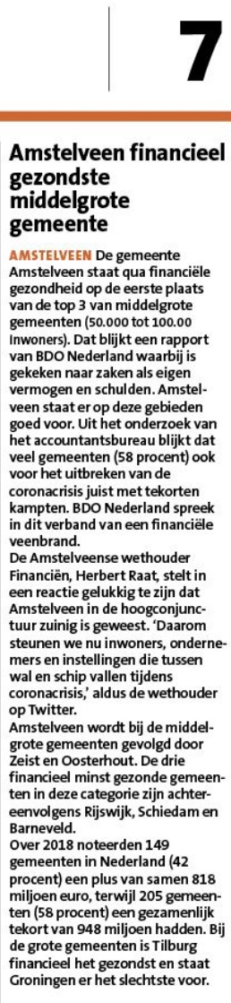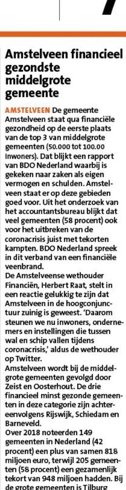 22-4-2020; Amstelveens Nieuwsblad-site; Herbert Raat over gezonde financiele positie Amstelveen Dit delen:TweetVind-ik-leuk Aan het laden...