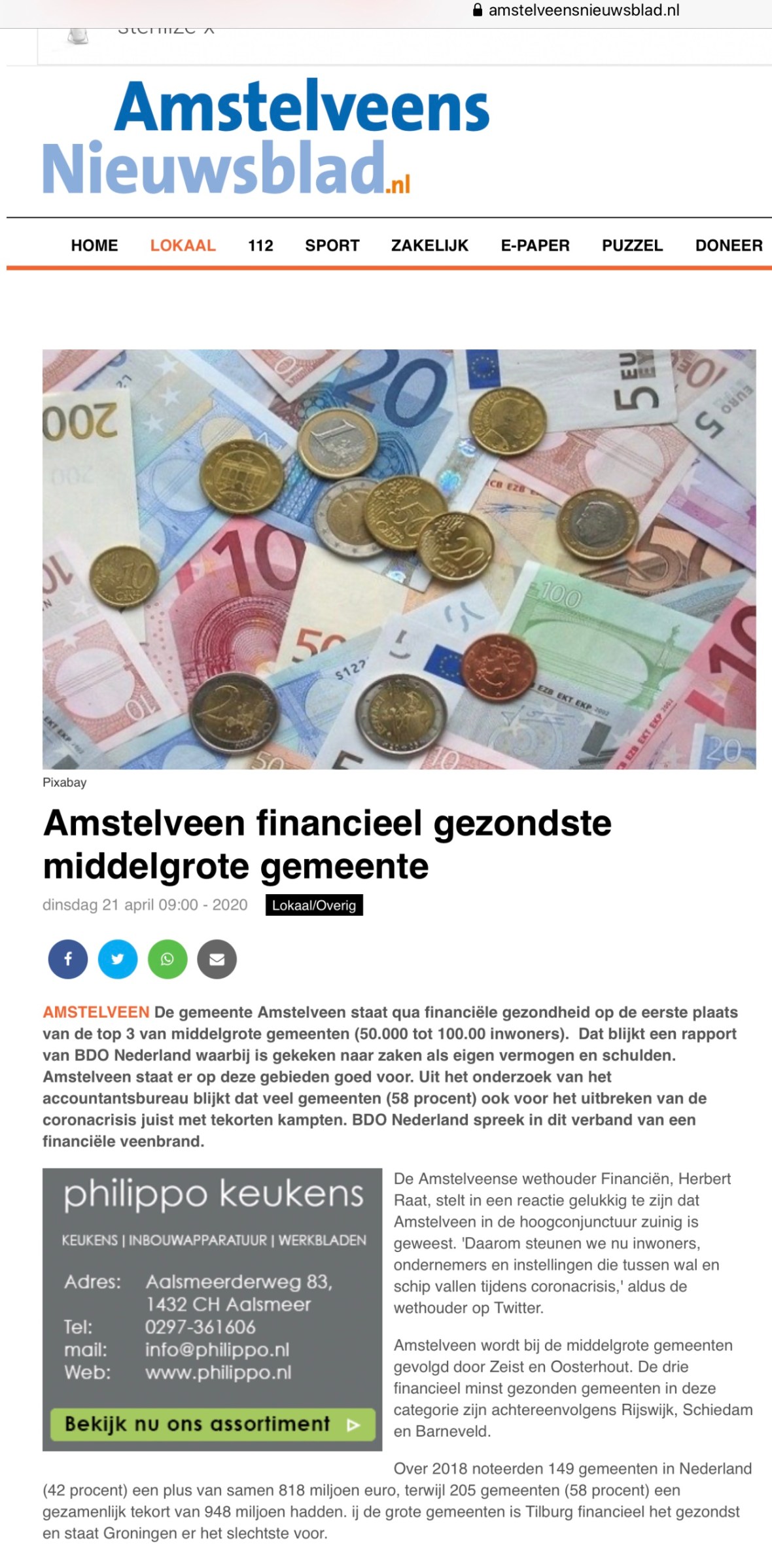 21-4-2020; Amstelveens Nieuwsblad-site; Herbert Raat over gezonde financiele positie Amstelveen Dit delen:TweetVind-ik-leuk Aan het laden...