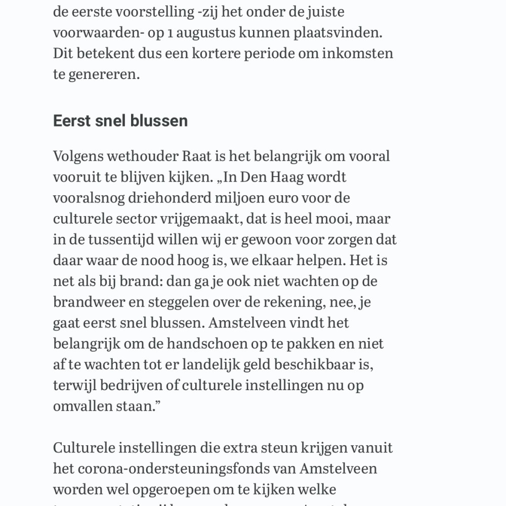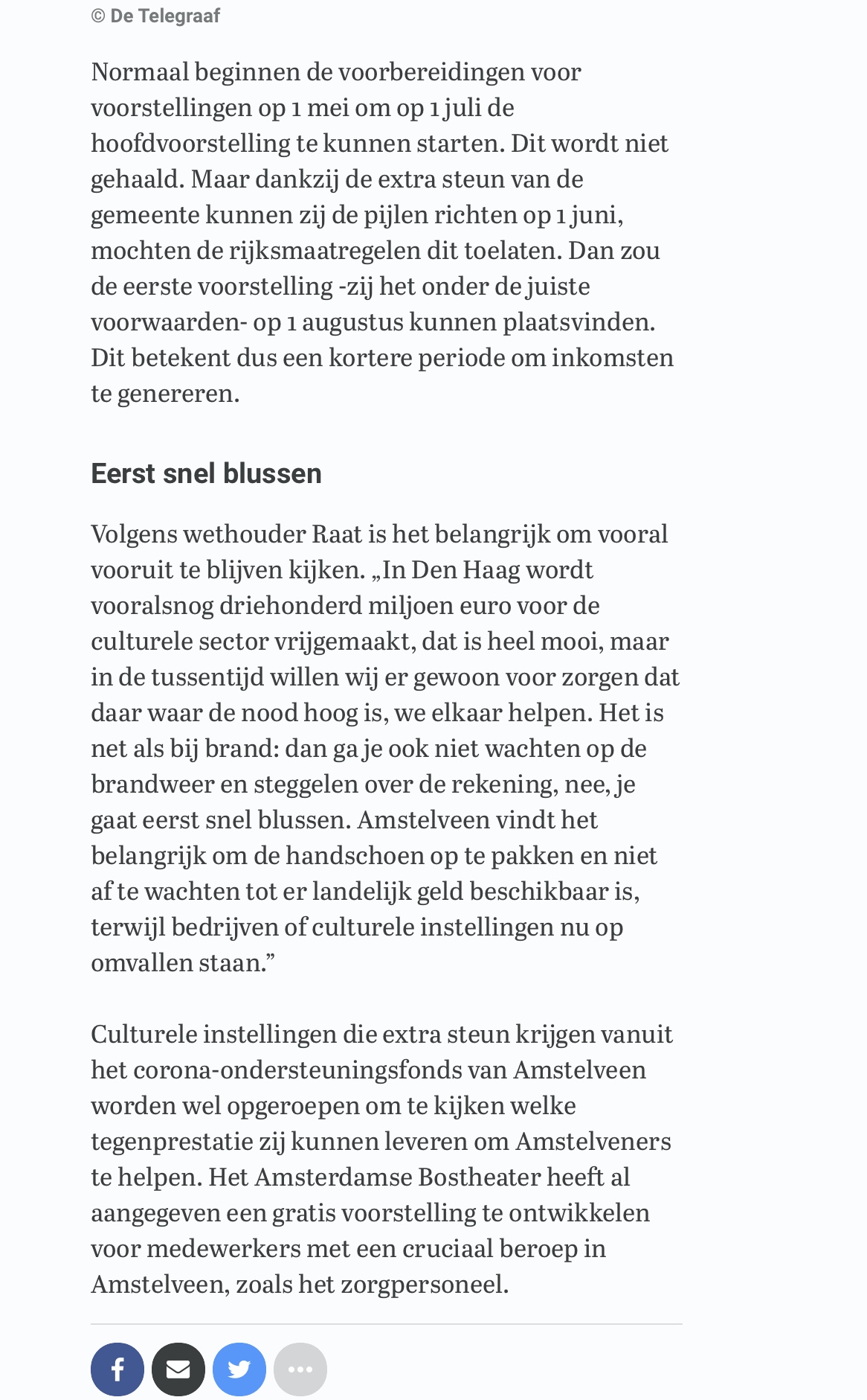 28-3-2020: Telegraaf site; Herbert Raat over steun bostheater door Amstelveen 3 van 3 Dit delen:TweetVind-ik-leuk Aan het laden...