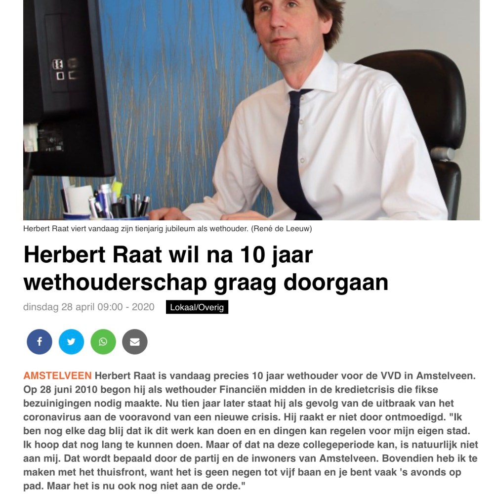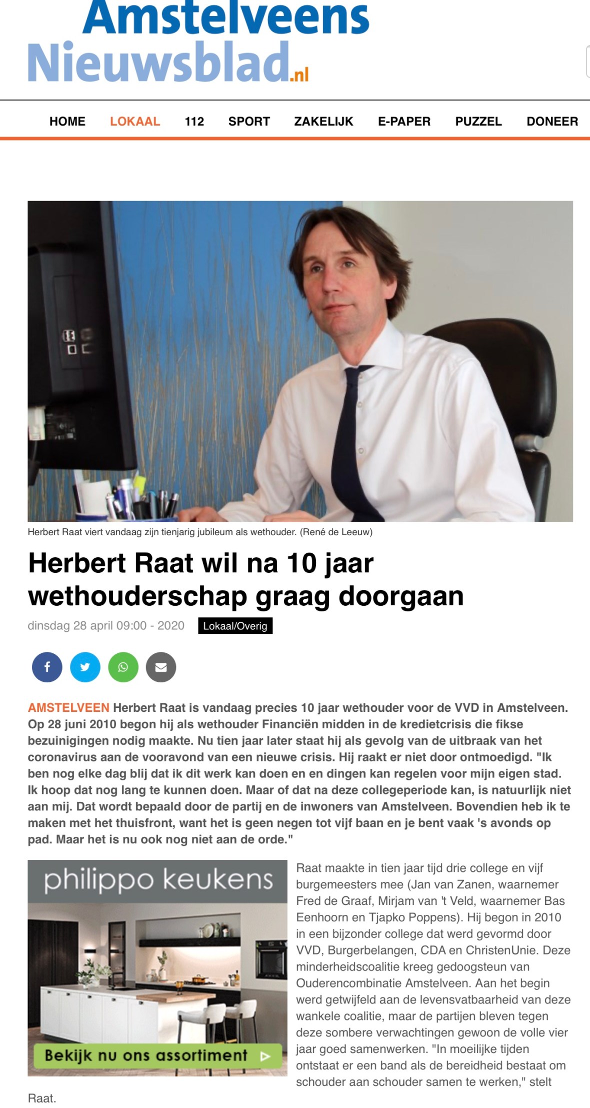 28-4-2020; Amstelveens Nieuwsblad: interview Herbert Raat 10 jaar wethouder 1 van 2 Dit delen:TweetVind-ik-leuk Aan het laden...