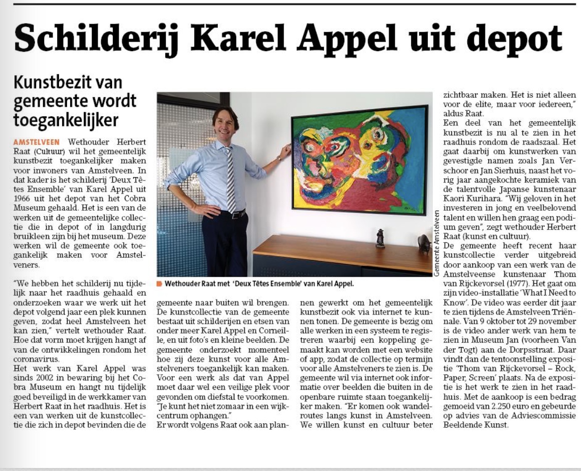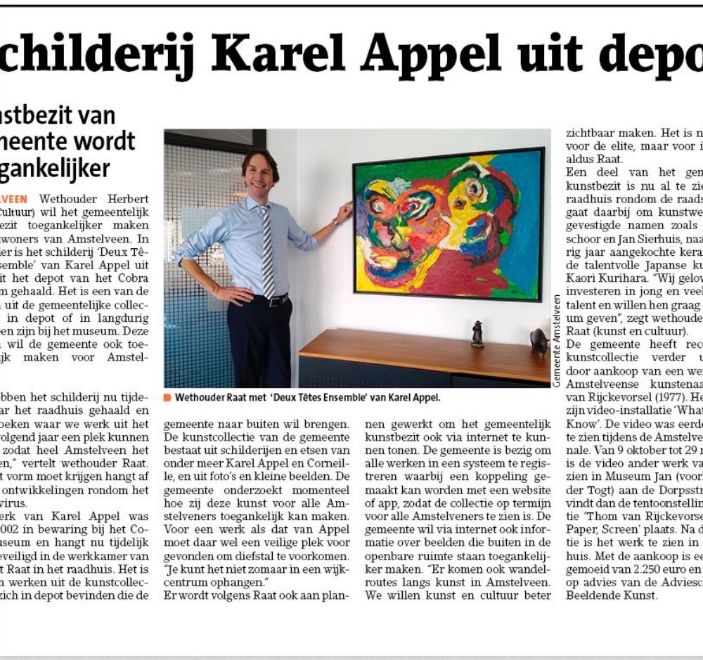 2020-Amstelveens Nieuwsblad; Wethouder Herbert Raat bij de twee gezichten van Karel Appel Dit delen:TweetVind-ik-leuk Aan het laden...