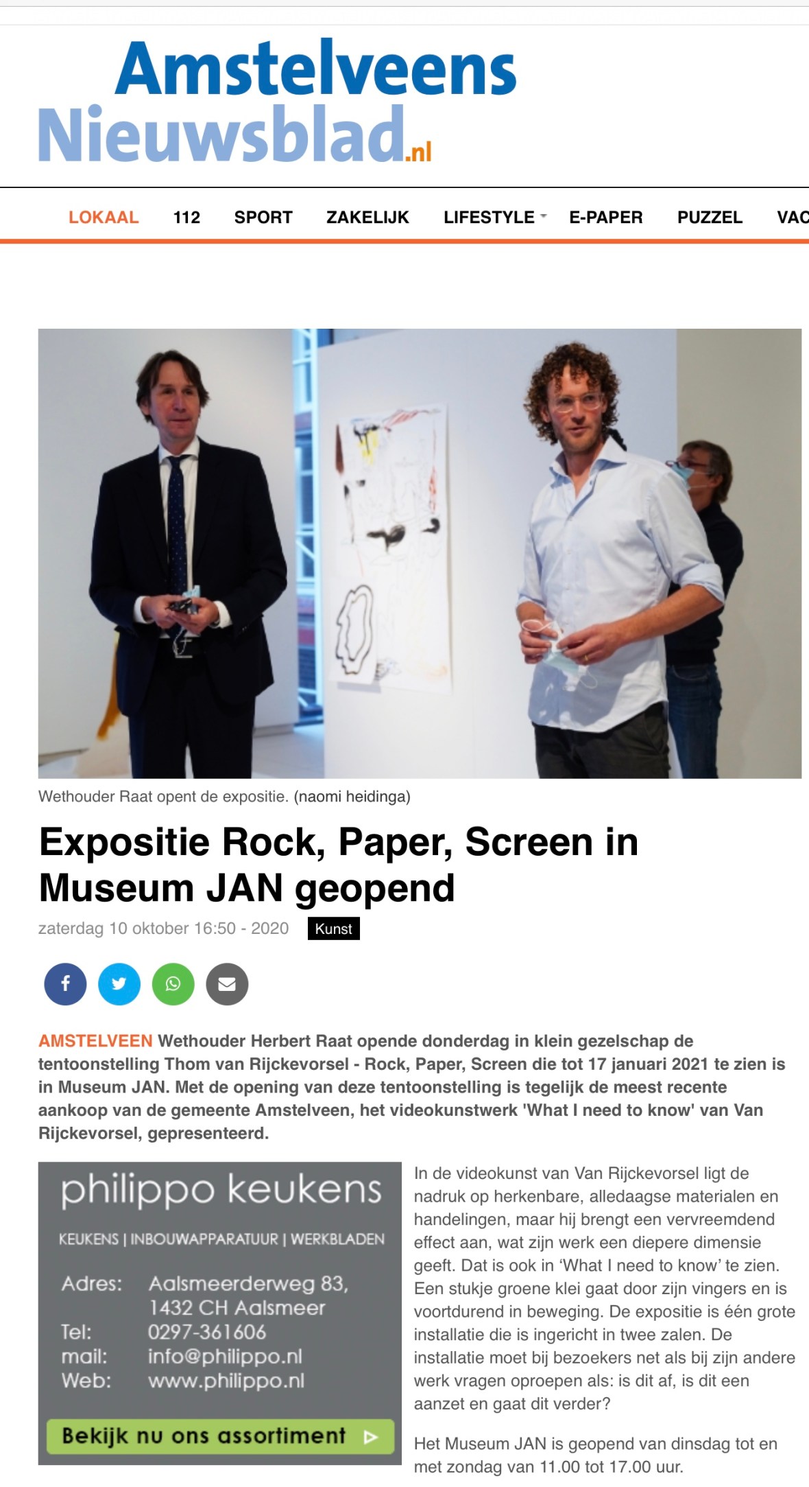 10-10-2020; Opening expositie Thom Van Rijckevorsel door Herbert Raat in Museum Jan Dit delen:TweetVind-ik-leuk Aan het laden...