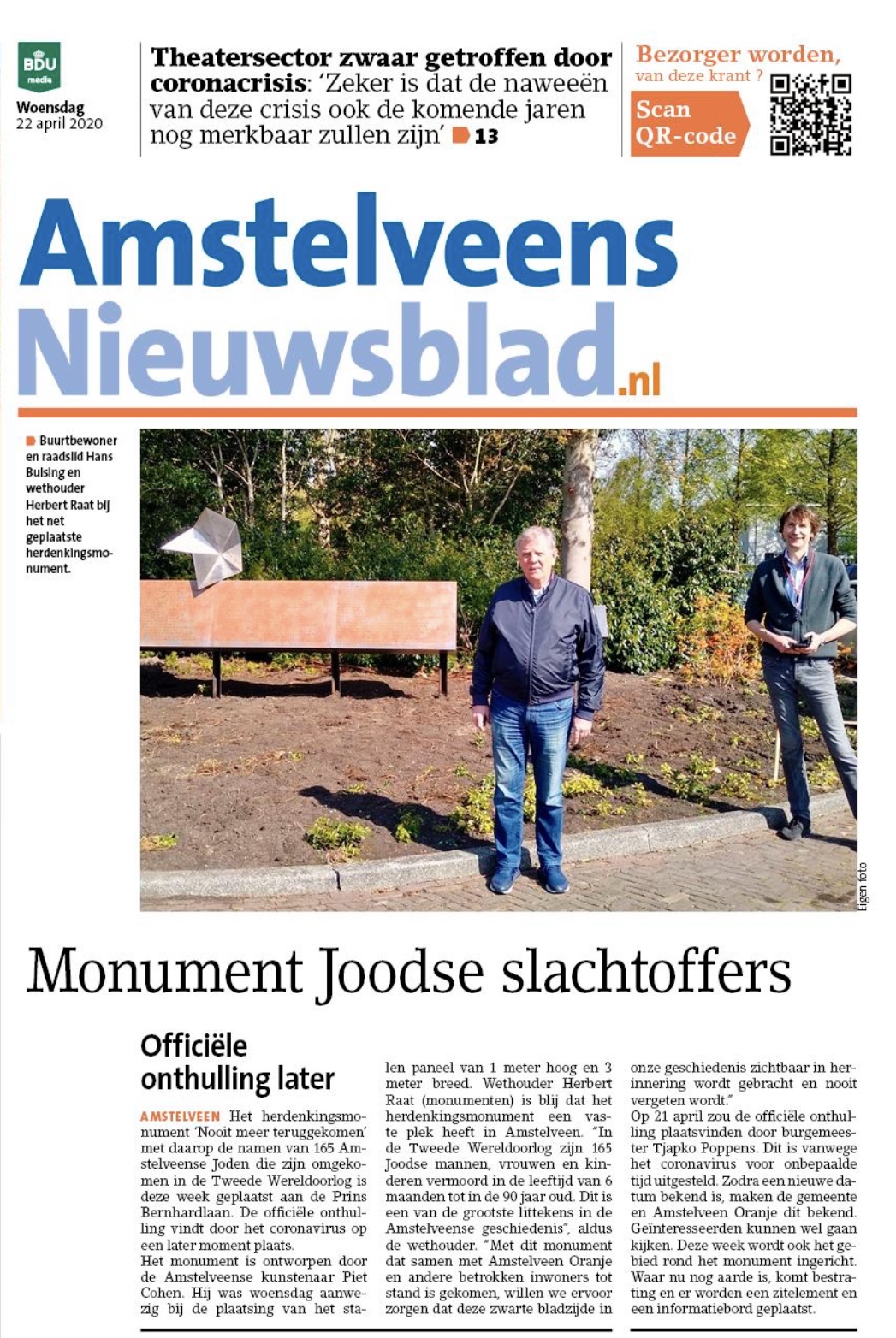 22-4-2010: Amstelveens Nieuwsblad; Hans Bulsing en Herbert Raat bij monument Joodse slachtoffers Amstelveen-krantversie Dit delen:TweetVind-ik-leuk Aan het laden...