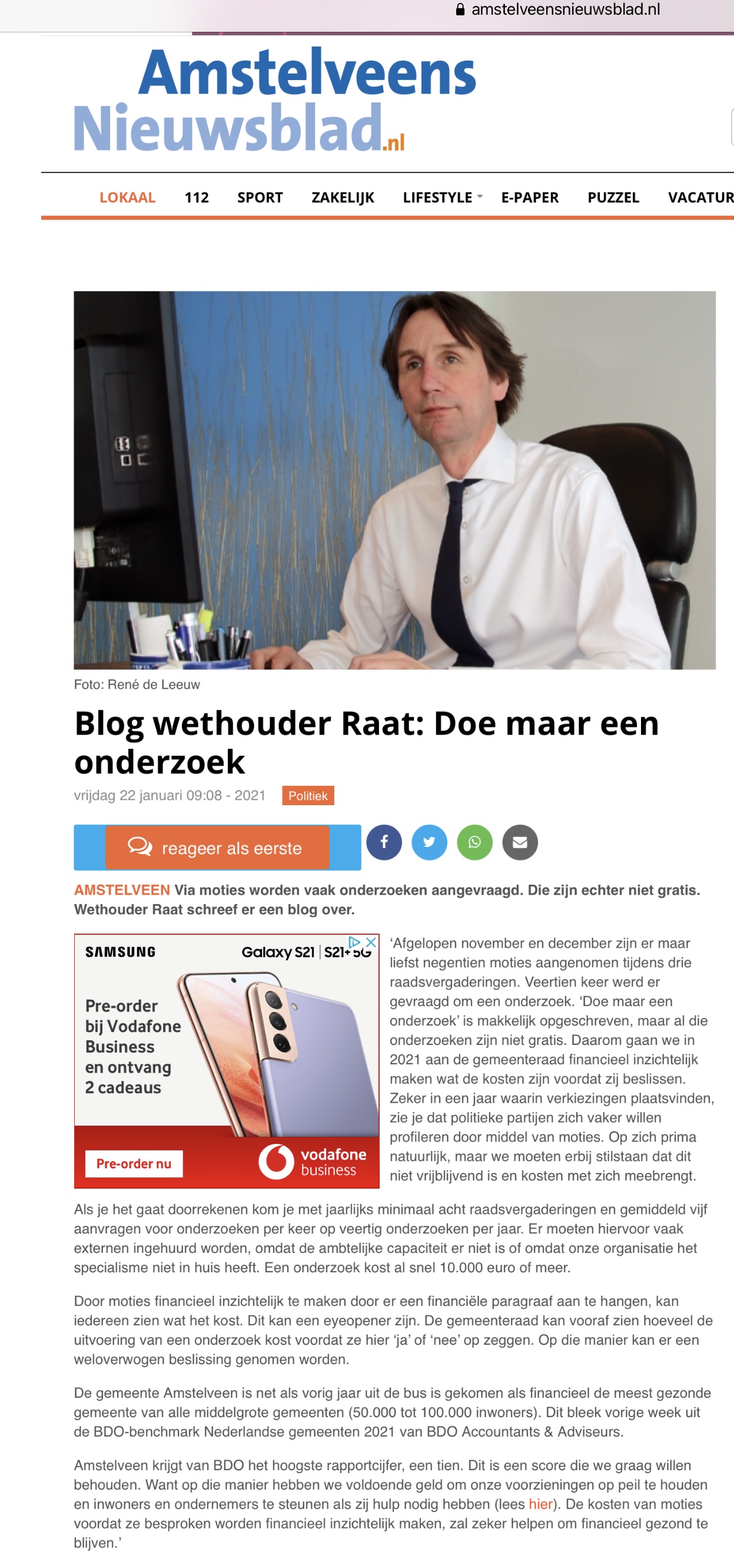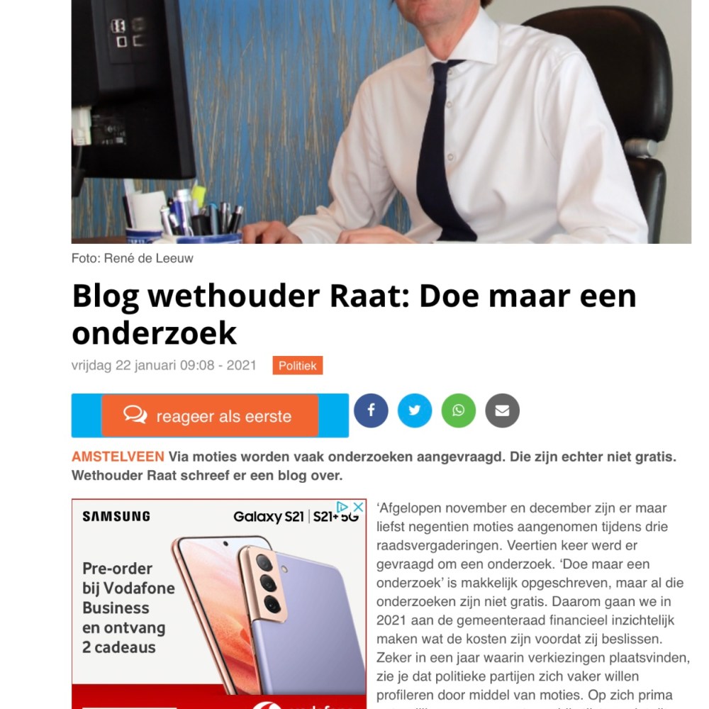 22-1-2021; Het Amstelveens Nieuwsblad; Herbert Raat over de vele onderzoeken en kosten Dit delen:TweetVind-ik-leuk Aan het laden...