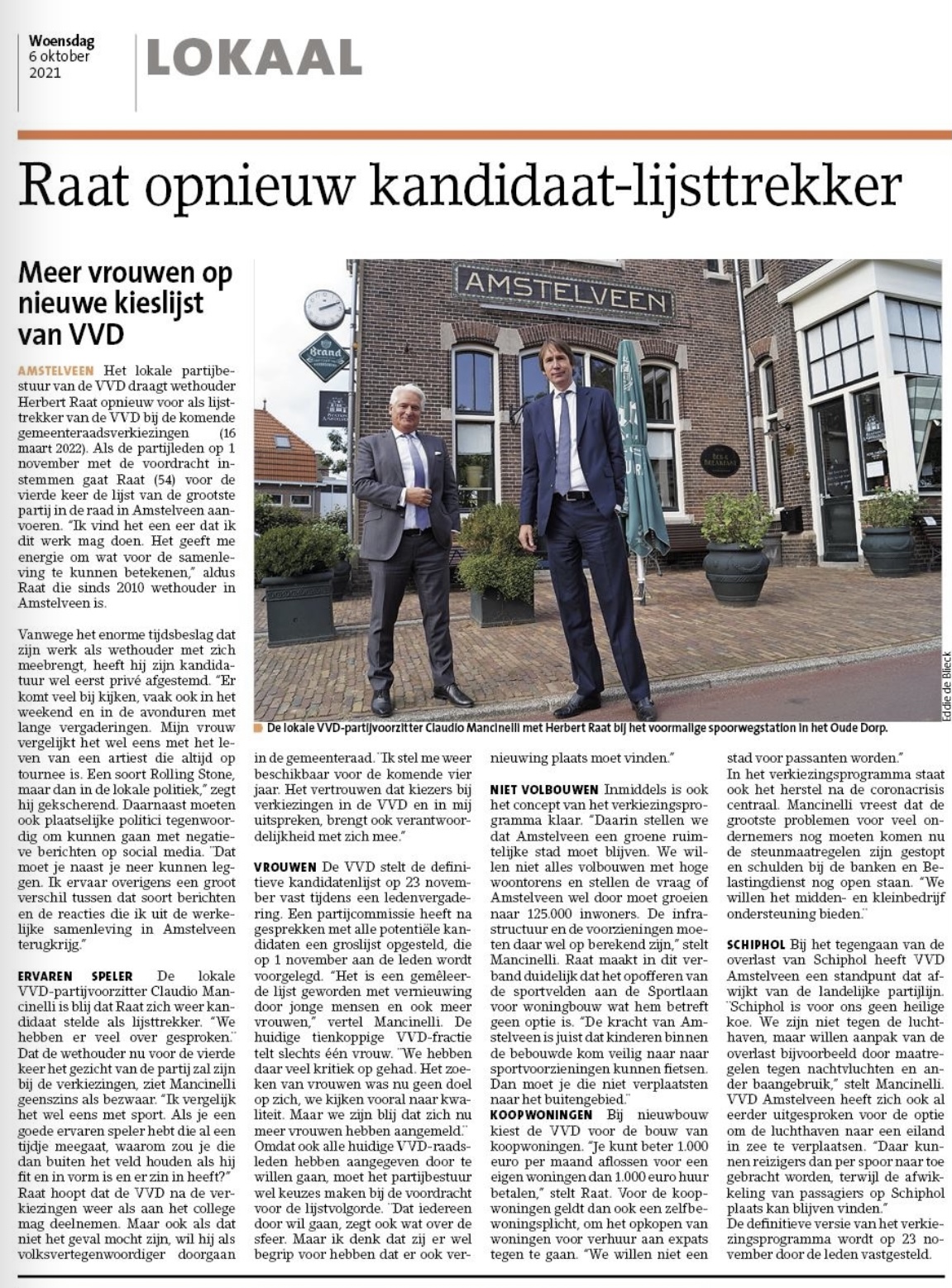 6-10-2021-Amstelveens Nieuwsblad Claudio Mancinelli em Herbert Raat over lijstrekkerschap VVD Amstelveen Dit delen:TweetVind-ik-leuk Aan het laden...
