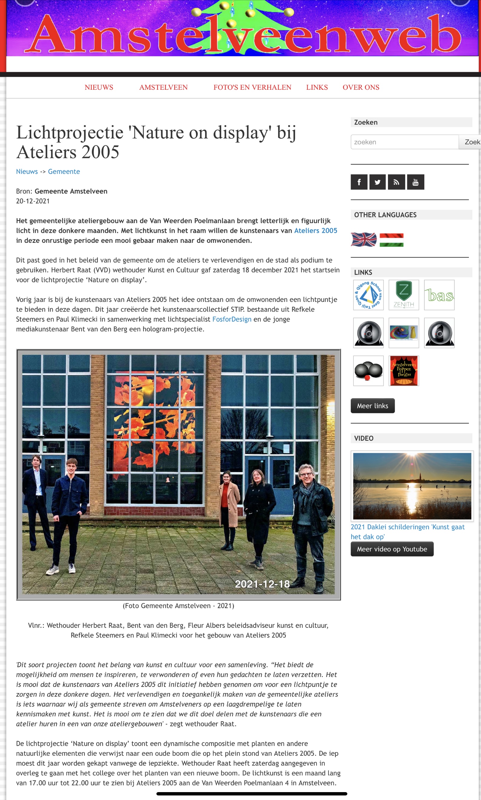 2021-Amstelveenweb.com: Lichtprojectie bij Ateliers 2005; Herbert Raat, Bent van den Berg, Fleur Albers, Refkele Steemers en Paul Klimecki Dit delen:TweetVind-ik-leuk Aan het laden...