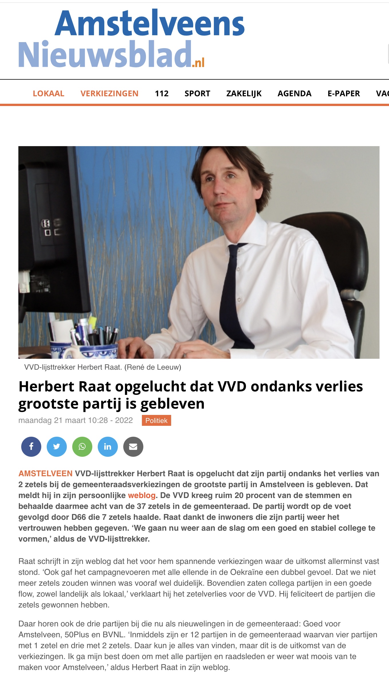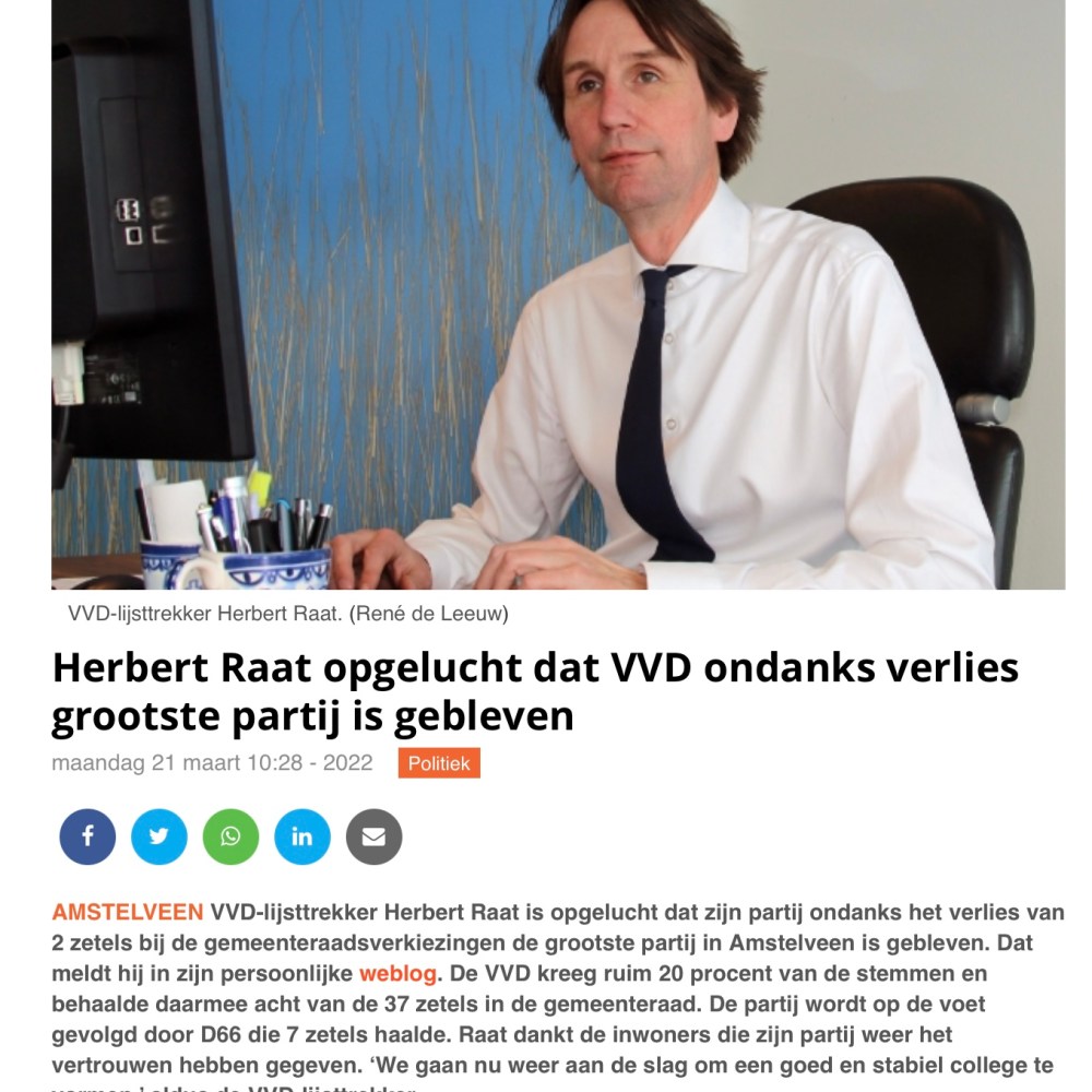 21-3-2022; Amstelveens Nieuwsblad: Herbert Raat-VVD weer grootste partij van Amstelveen Dit delen:TweetVind-ik-leuk Aan het laden...