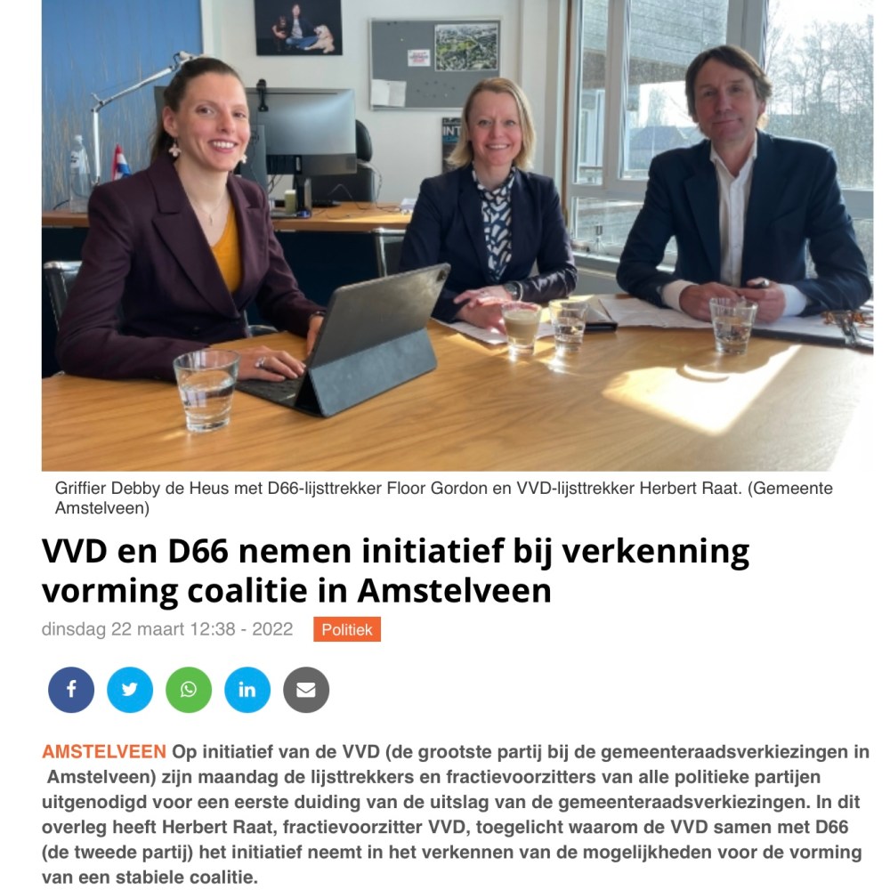 22-3-2022; Amstelveens Nieuwsblad: Herbert Raat VVD neemt met Floor Gordon D66 initiatief bij vorming coalitie Amstelveen Dit delen:TweetVind-ik-leuk Aan het laden...