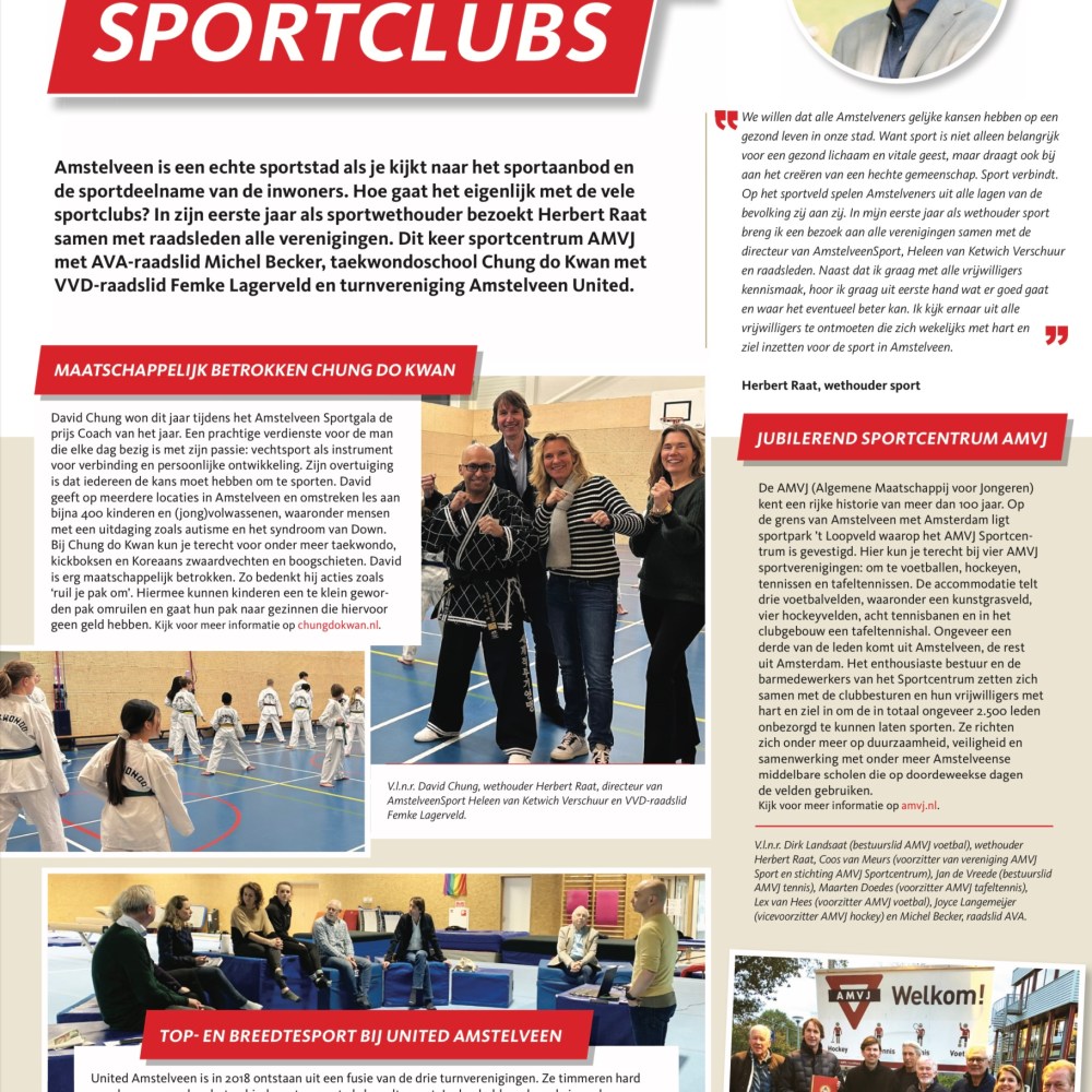 22-2-2023; Amstelveens Nieuwsblad; Herbert Raat, Michel Becker AvA, Femke Lagerveld VVD, Teakwondoschool Chung do Kwan, United Amstelveen en AMVJ.