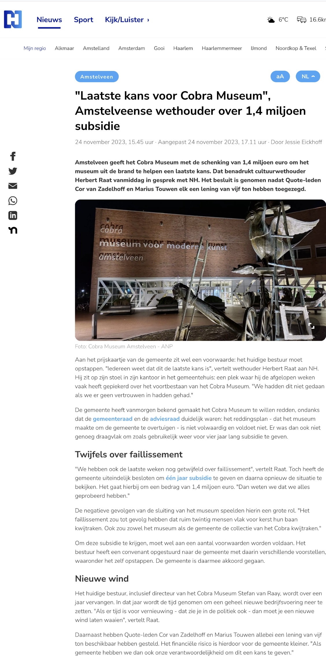 24-11-2023; NH-nieuws over Cobra Museum, Herbert Raat