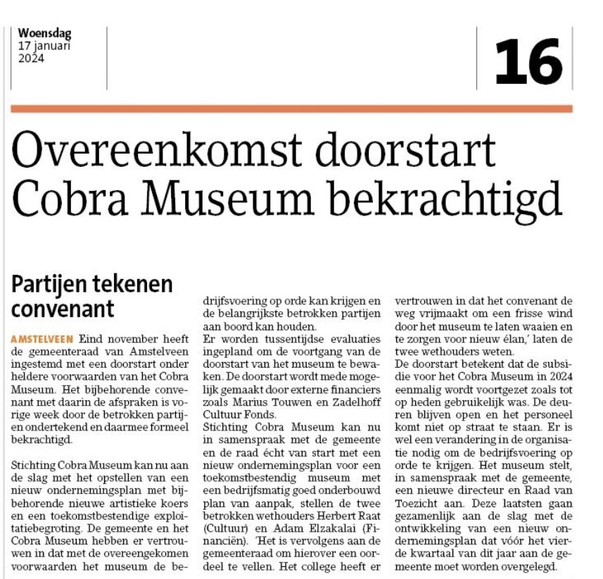 17-1-2024-Amstelveens Nieuwsblad Cobra overeenkomst