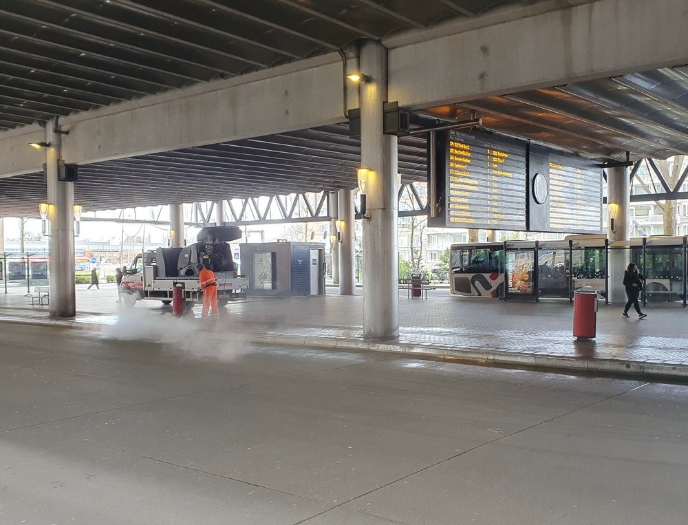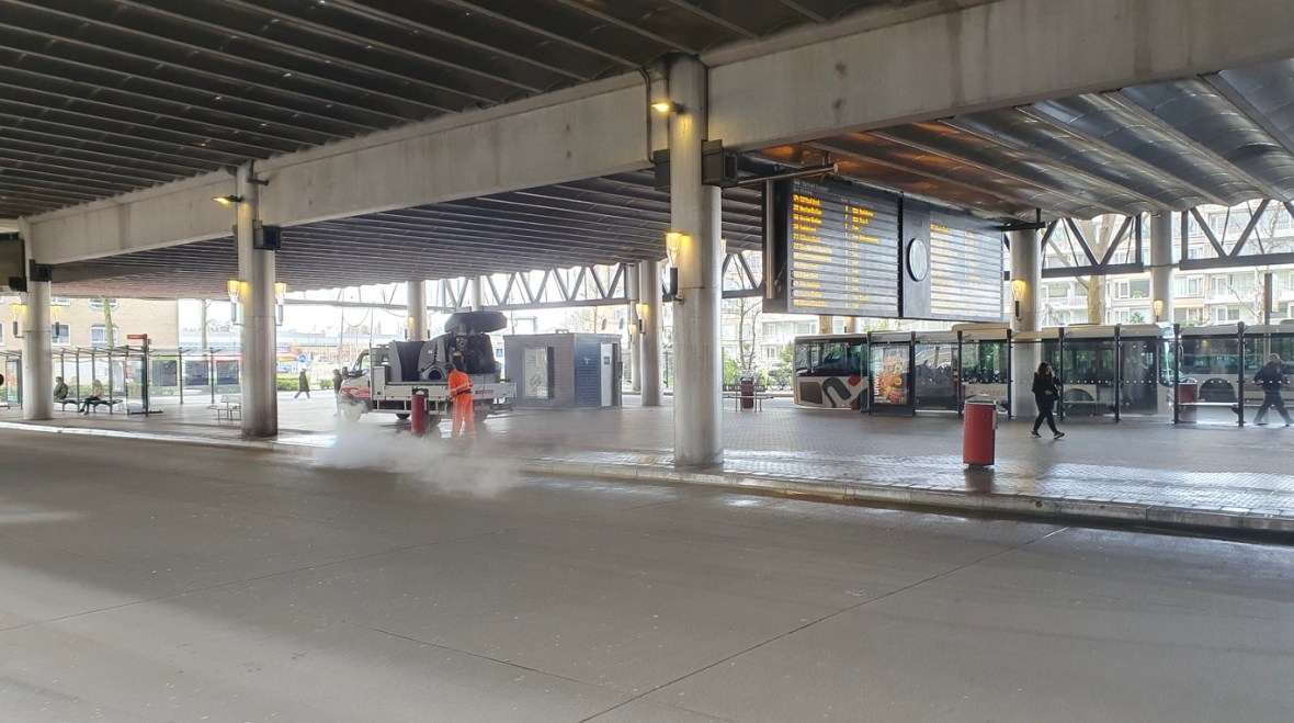 Maart 2024-Busstation Amstelveen wordt schoon gespoten.