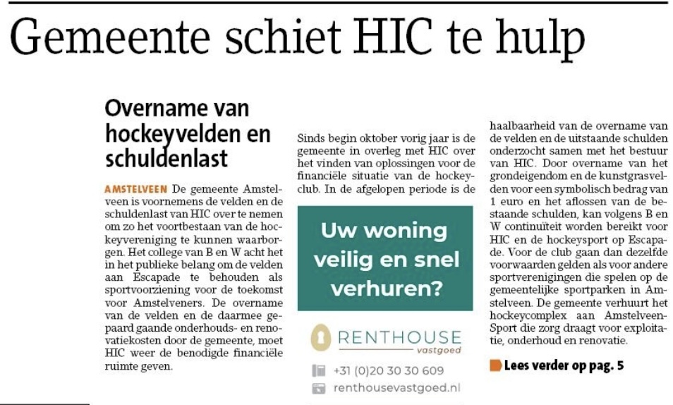 Februari 2024-Amstelveens Nieuwsblad: Herbert Raat over het belang van Amstelveen om hockeyvereniging HIC over te nemen 1 van 2 Dit delen:TweetVind-ik-leuk Aan het laden...