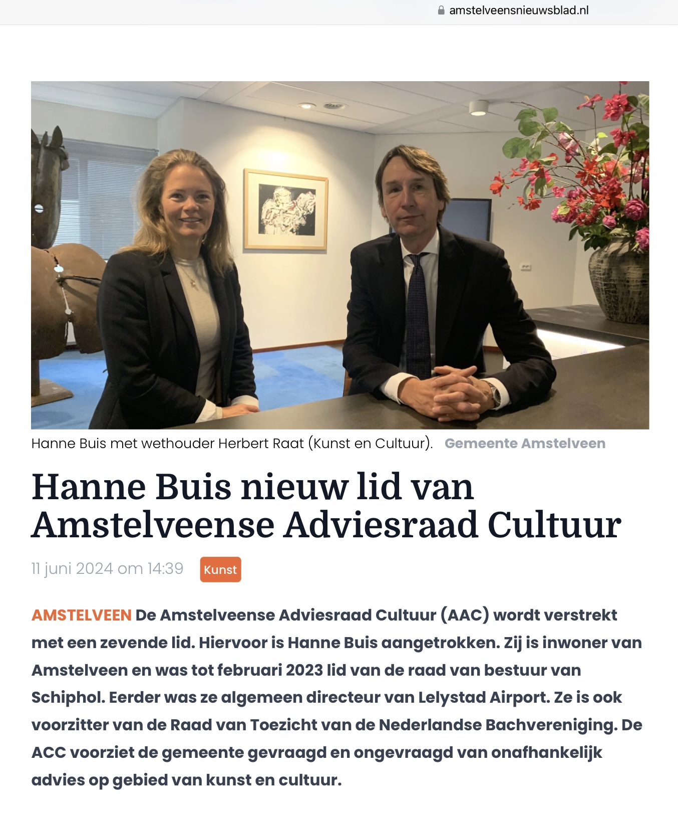 11-6-2024-Amstelveens Nieuwsblad Hanne Buis en Herbert Raat Amstelveense Adviesraad Cultuur 1 van 2 Dit delen:TweetVind-ik-leuk Aan het laden...