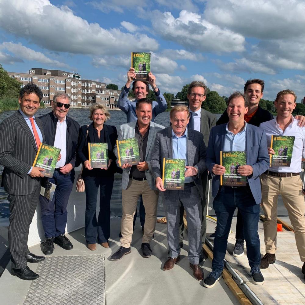60 jaar Amstelveen bij Sunday Floating Foodbar-Adam Elzakalai, Hans Bulsing, Hanny Guit, Herbert Raat, Martijn van Dalen, Michel Becker, Tjapko Poppens, Andre van der Sterre, Harmen van der Steenhoven en Bart Dorgelo