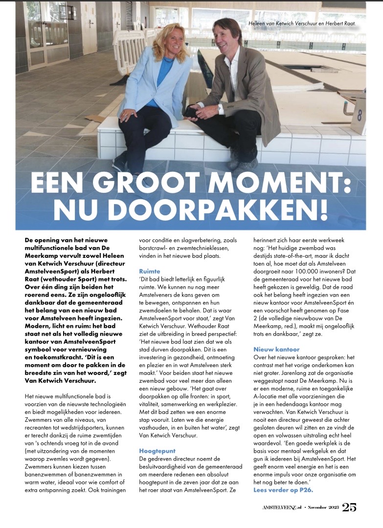 november 2025-Amstelveenz-Heleen van Ketwich-Herbert Raat interview toekomst sport en zwemmen 1-3 Dit delen:TweetVind-ik-leuk Aan het laden...